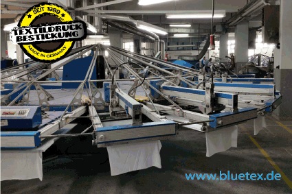 Das bekannte Siebdruckverfahren wird auch als Direktdruck bezeichnet. In einem Druckvorgang können bis zu 18 Farben realisiert werden.